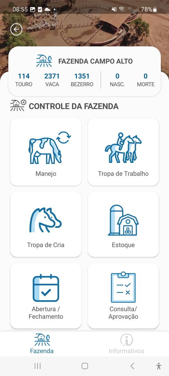 Atualmente nas fazendas da Agropecuária do Campo, utilizamos uma ferramenta tecnológica para controle dos animais, desenvolvida especialmente para nós.