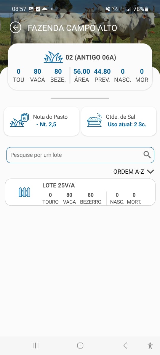 Antigamente os capatazes tinham uma caderneta manual (um pequeno caderno) onde colocavam as informações de cada pasto, como qual o lote que estava no pasto, qual o tipo de sal utilizado, quando iniciou o período de monta e outras informações pertinentes para nosso controle, com a implantação da caderneta digital, o capataz faz o mesmo processo só que digitalmente, ele consegue ver informações importantes e dados sobre a fazenda rapidamente na palma da sua mão. Eles conseguem tirar dúvidas sobre doenças e cuidados com bezerros sempre que necessário e de fácil acesso.