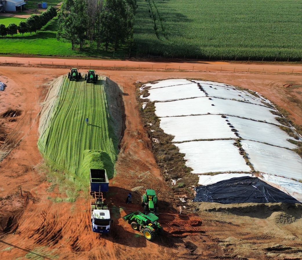 O processo de produção da silagem é denominado de ensilagem, que apesar de simples, deve ser assertivo para que o valor nutritivo do material que veio do campo não seja perdido dentro do silo, por esse motivo, precisamos estar atentos a alguns pontos, como: ponto de colheita, forma de colheita, compactação e vedação do silo.
